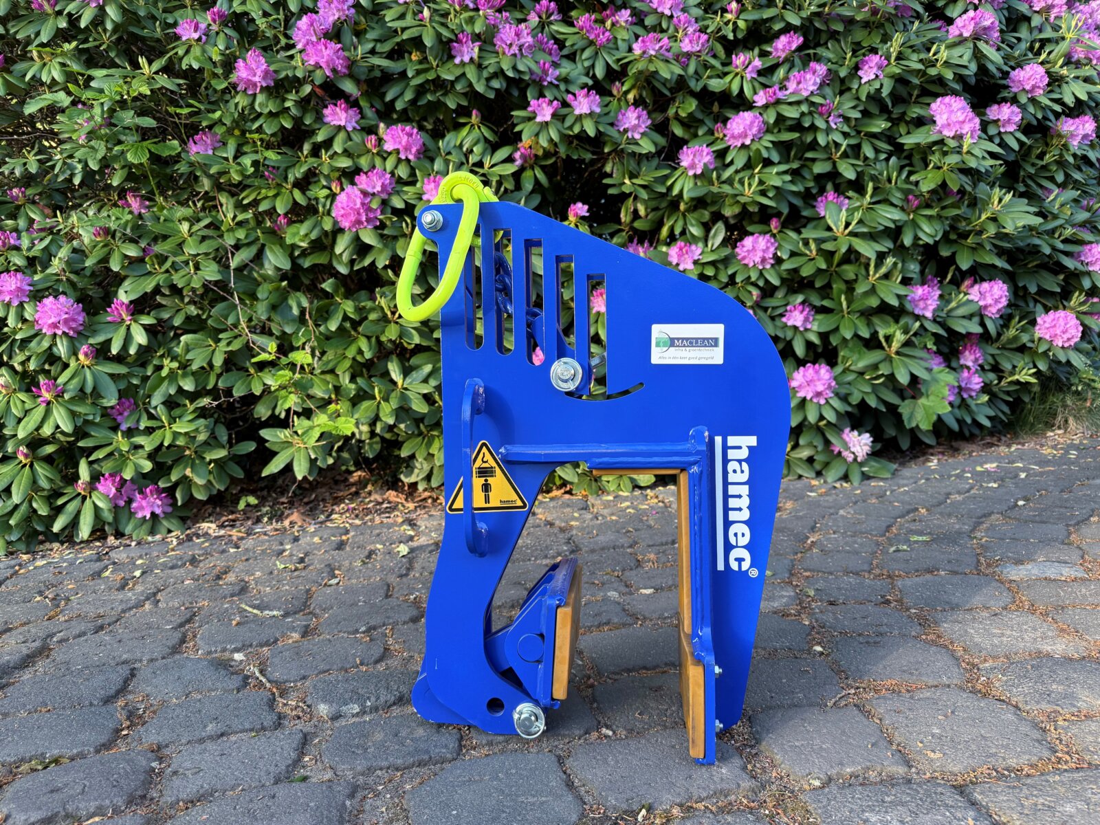 Onze nieuwste aanwinst is een Hamec mechanische keerwandenklem zodat bij het plaatsen van keerwanden dit veilig kunnen uitvoeren. De keerwandenklem heeft een maximum draaglast (WLL) van 3100 kg en een eigen gewicht van 38 kg. Het grote voordeel van de mechanische keerwandklem is dat hij zich vastklemt door het gewicht van de keerwand. Zodoende is een hydrauliek-aansluiting overbodig. De maximale grijpdiepte is 300 mm. De breedte van de klem is 200 mm.