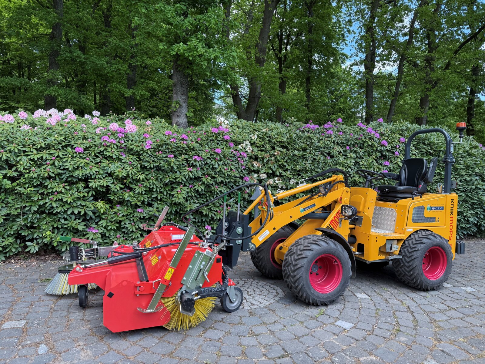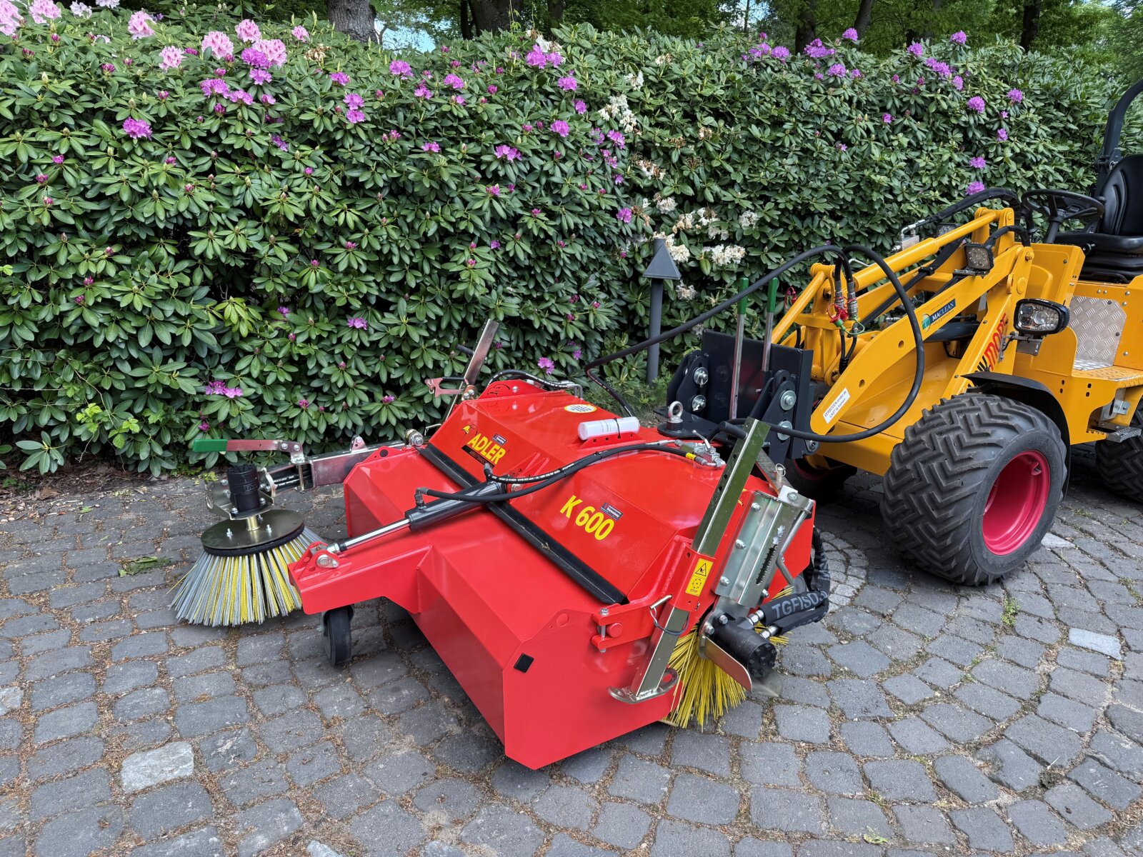 Onze nieuwste aanwinst is een Adler K600 veegmachine met zijborstel voor onze knikmops 140. De machine wordt ingezet op onze eigen projecten voor het schoonhouden van de wegen, parkeerplaatsen etc tijdens onze werkzaamheden.