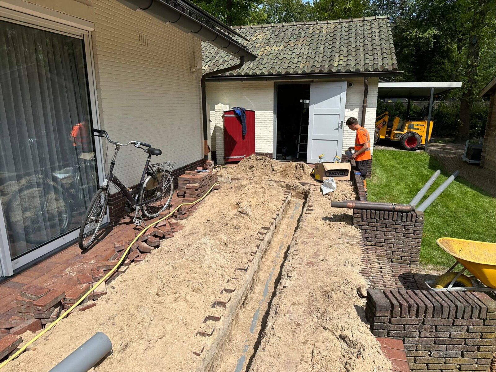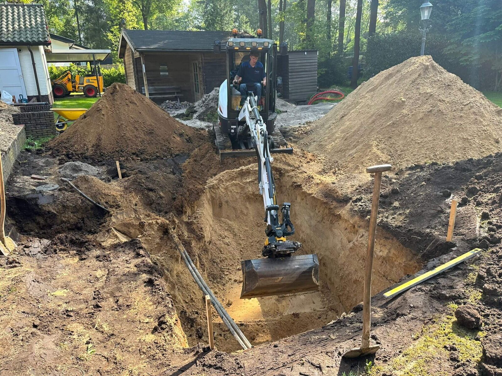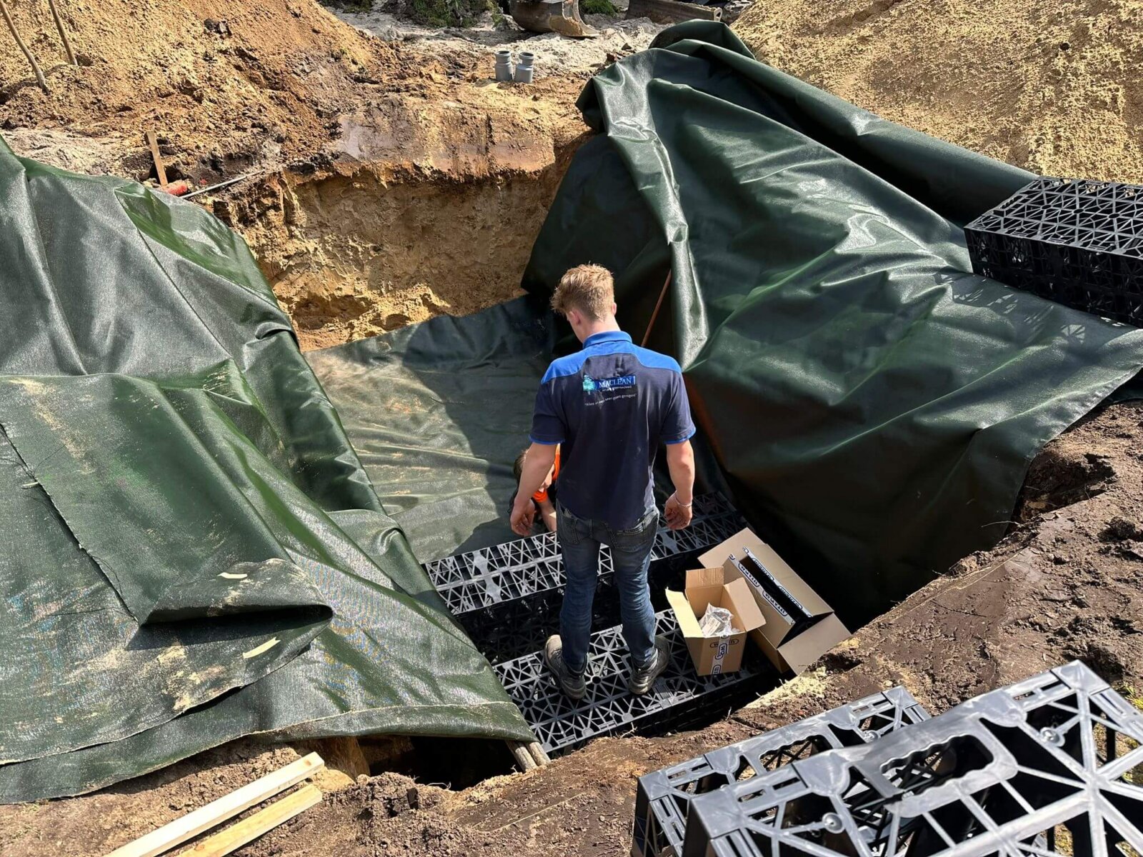Aanleg infiltratiekratten voor het afkoppelen regenwater woning ’t Harde.