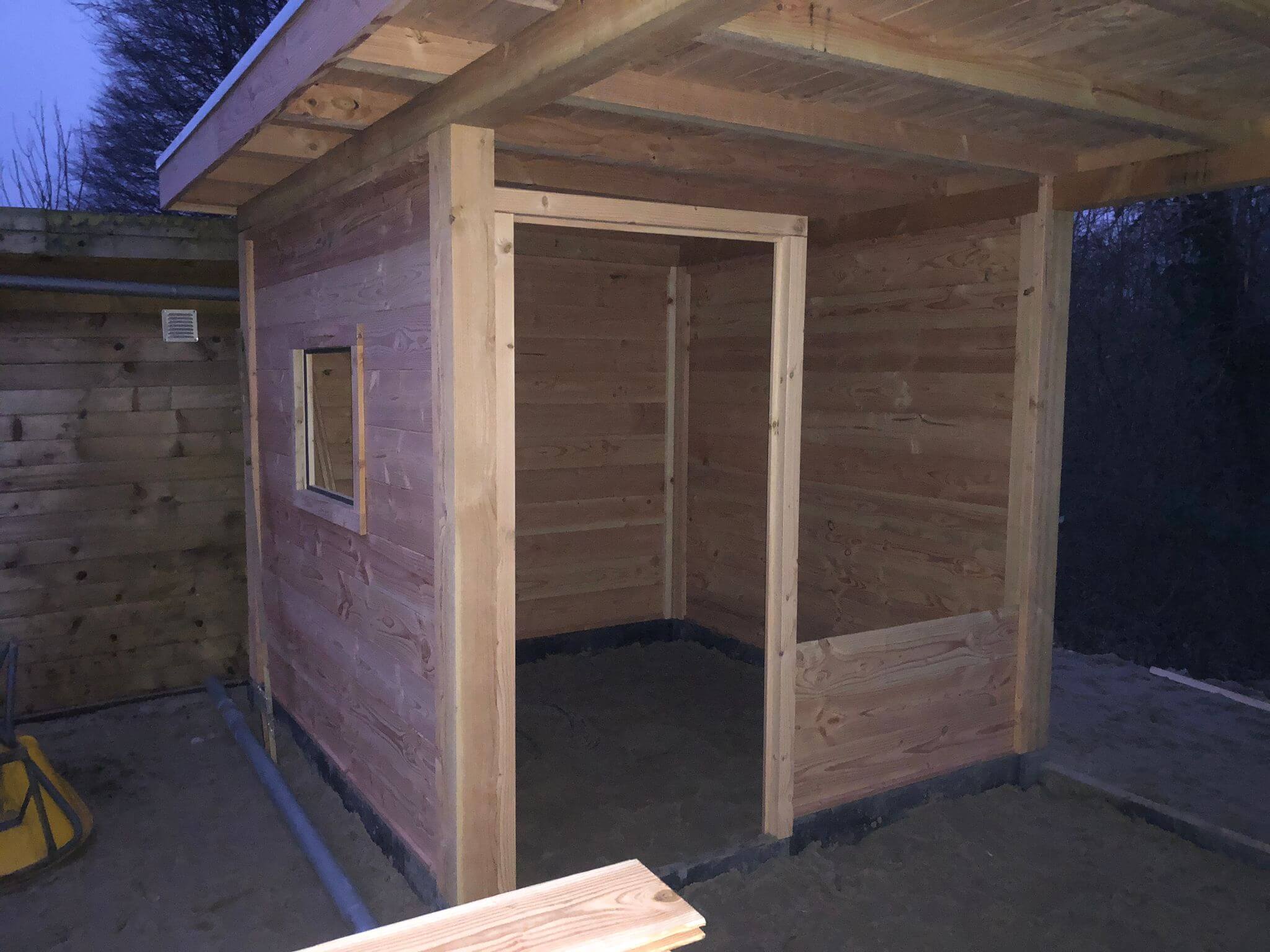 deur in schuur en in de overkapping t.b.v doorgang naar het achterpad.schutting van 9 meter.
