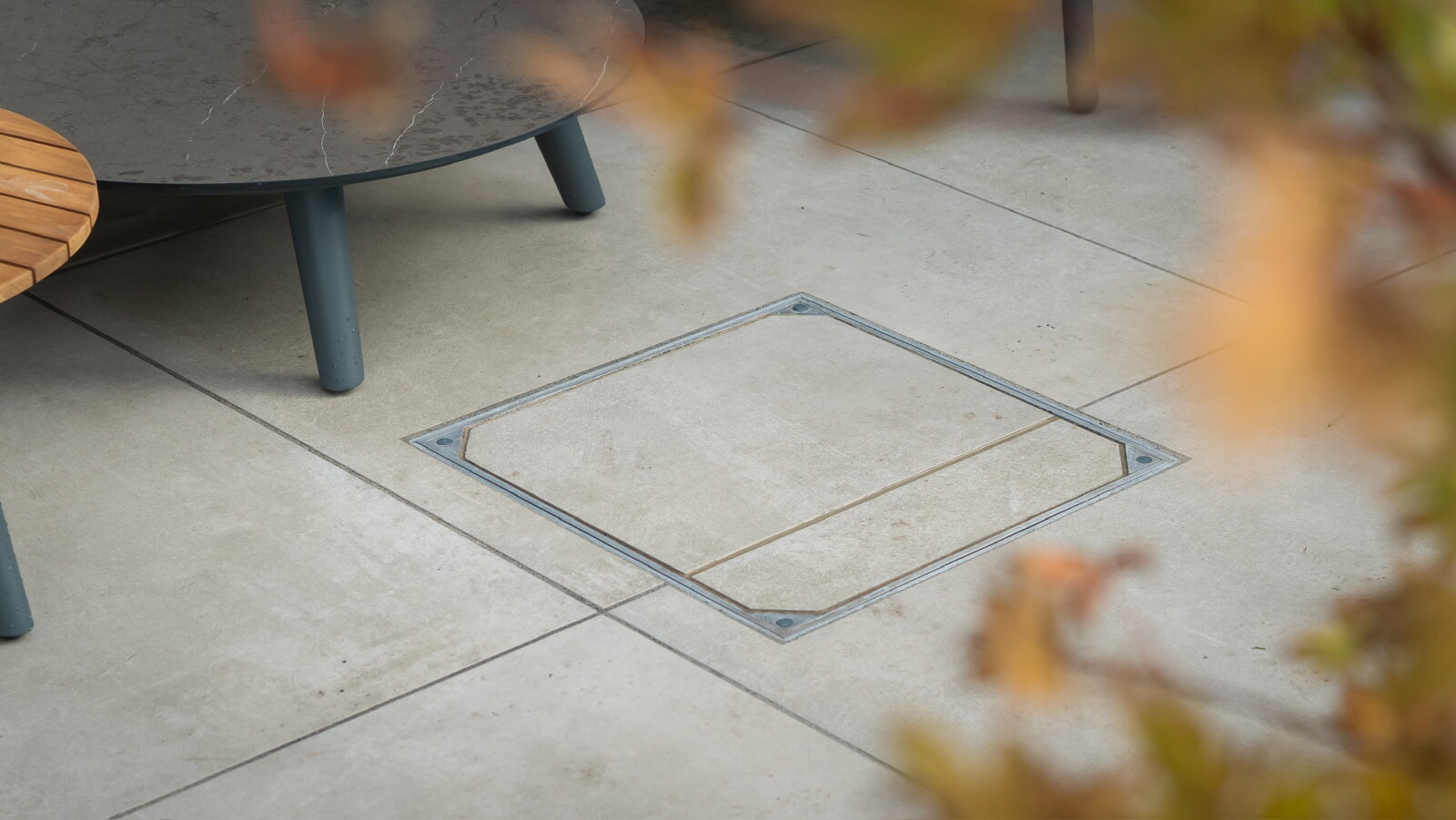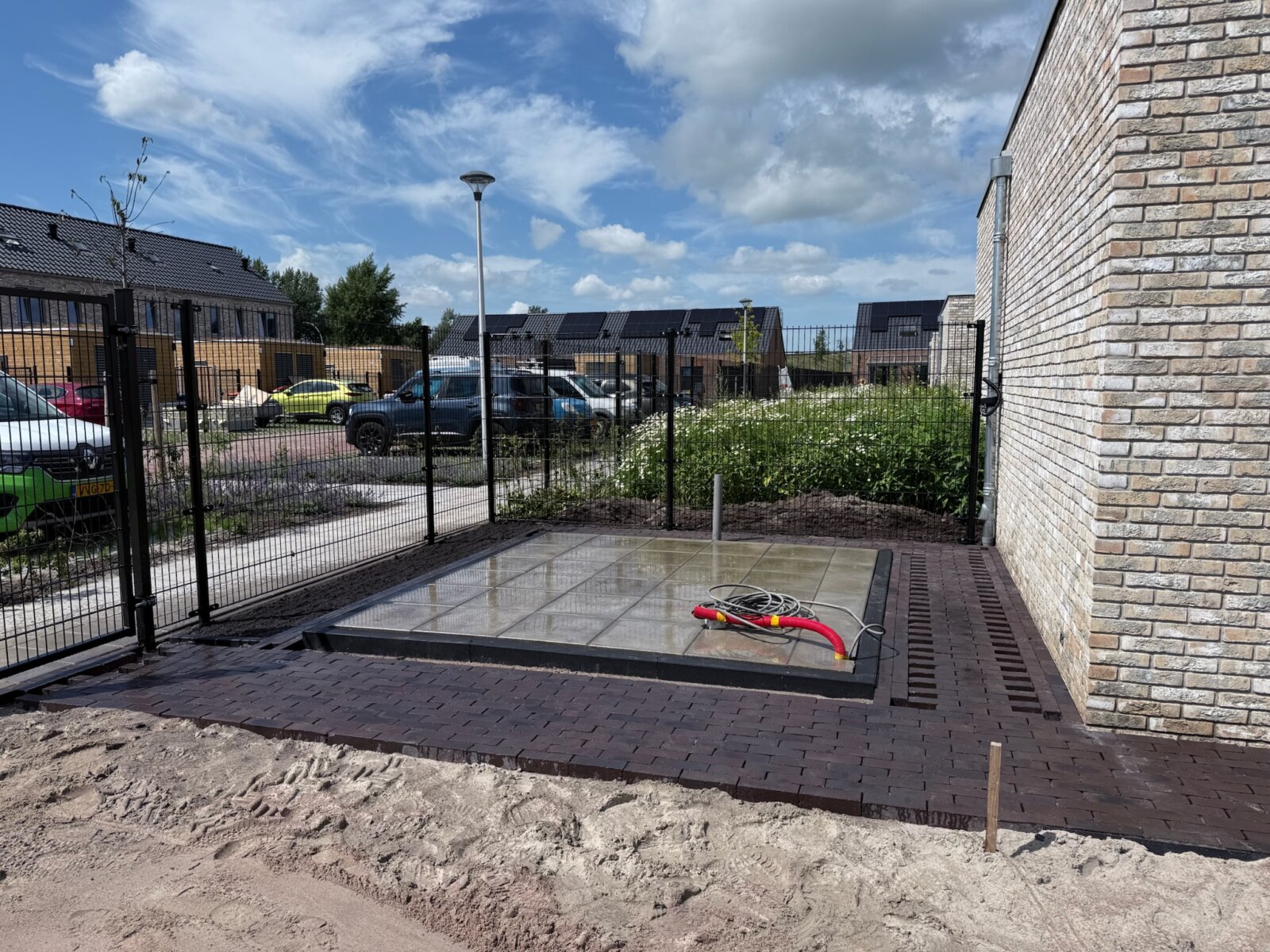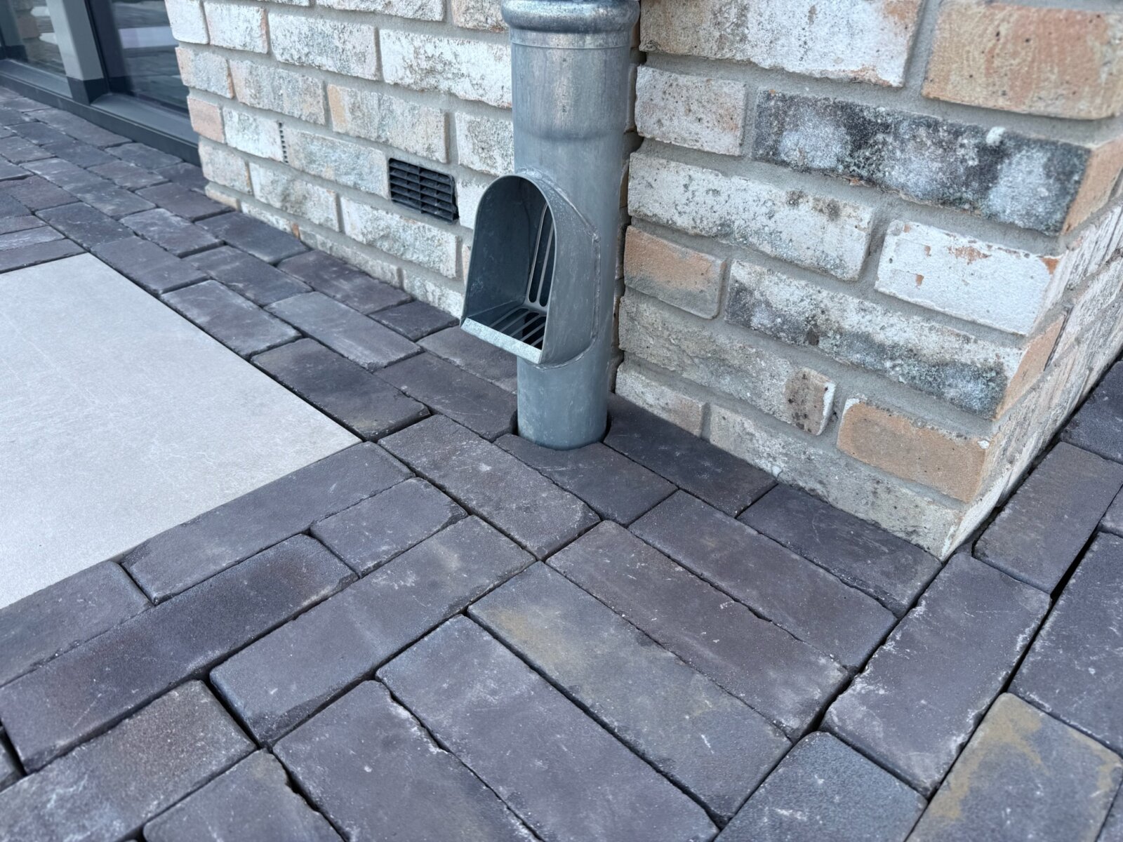 Langs de paden en in de borders plaatsen we In-Lite verlichting, aangestuurd door de Smart Hub-150. In de achtertuin worden de bomen uitgelicht met In-Lite SMART spots, die instelbaar zijn in warm-wit en kleur. Dit zorgt straks voor een sfeervolle uitstraling in de avonduren. Voor de afwatering kozen we een ACO Slimline aluminium lijnafwatering en een rvs-putje onder de buitenkraan. In het terras werken we de zandvangput af met een aluminium tegeldeksel waarin dezelfde keramische tegel is verwerkt. Met dit lopende project in Zwolle laten we zien hoe wij complete tuinen realiseren die design, duurzaamheid en comfort combineren. Binnenkort volgt de afronding met de beplanting en de laatste details!