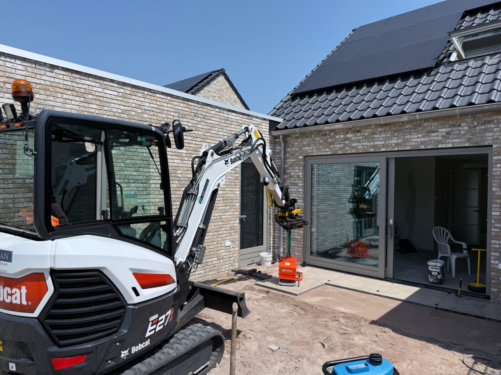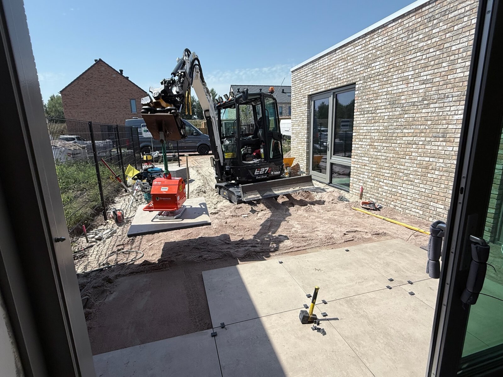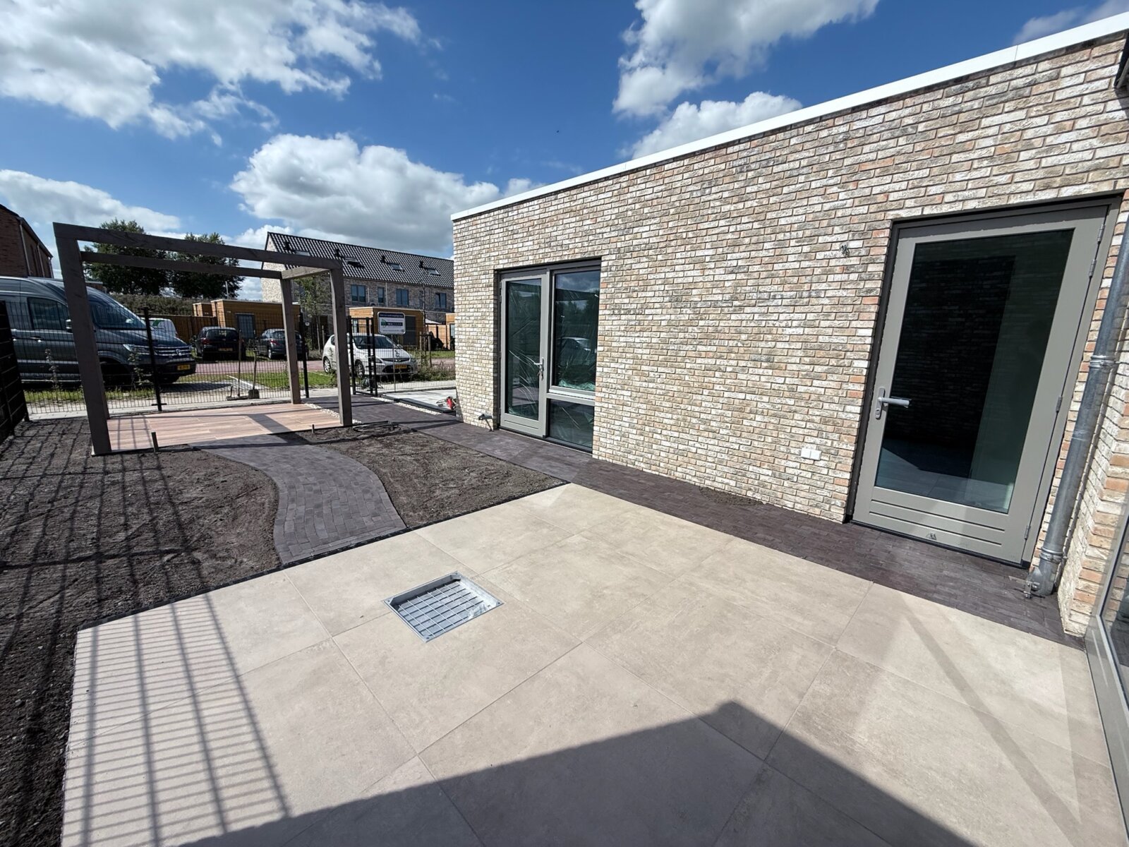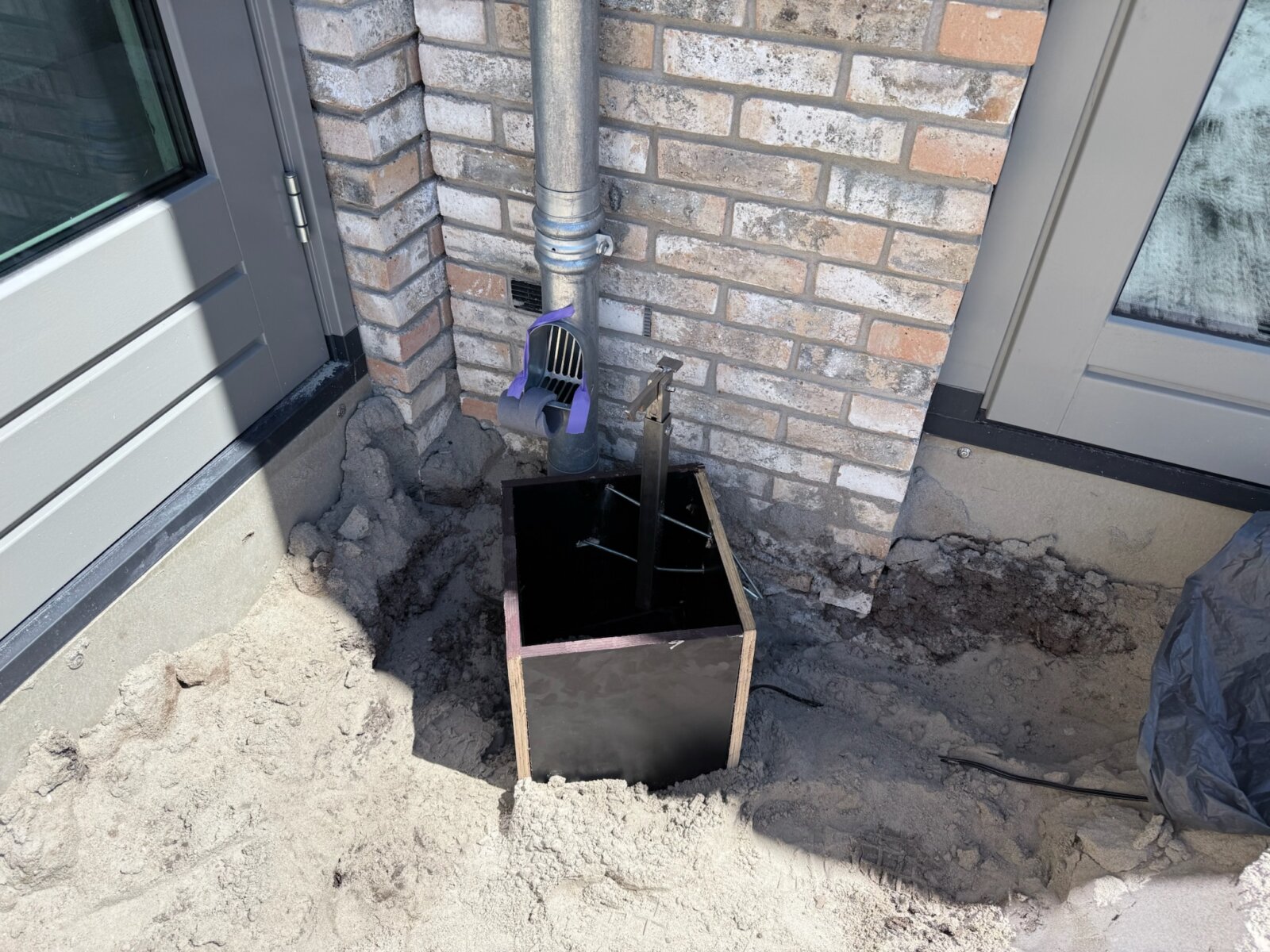 Langs de paden en in de borders plaatsen we In-Lite verlichting, aangestuurd door de Smart Hub-150. In de achtertuin worden de bomen uitgelicht met In-Lite SMART spots, die instelbaar zijn in warm-wit en kleur. Dit zorgt straks voor een sfeervolle uitstraling in de avonduren. Voor de afwatering kozen we een ACO Slimline aluminium lijnafwatering en een rvs-putje onder de buitenkraan. In het terras werken we de zandvangput af met een aluminium tegeldeksel waarin dezelfde keramische tegel is verwerkt. Met dit lopende project in Zwolle laten we zien hoe wij complete tuinen realiseren die design, duurzaamheid en comfort combineren. Binnenkort volgt de afronding met de beplanting en de laatste details!