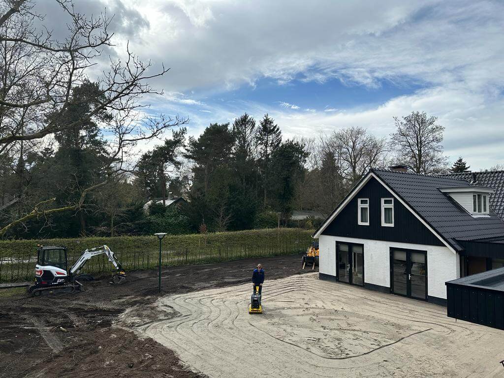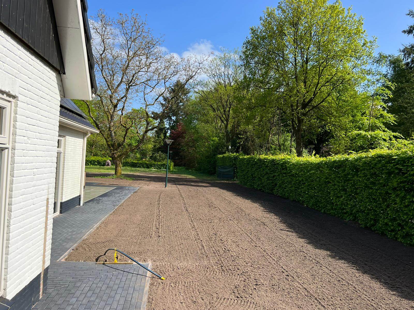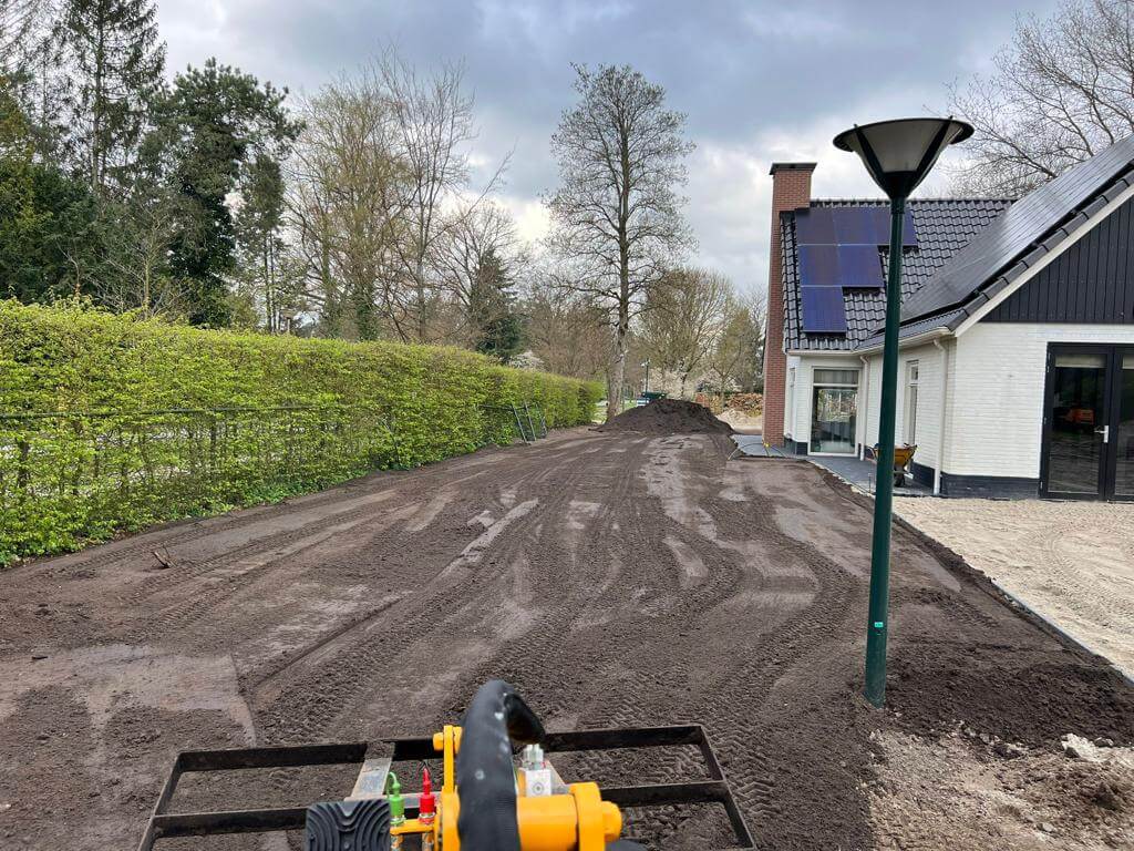 De tuin is aangevuld met tuinaarde wat wordt ingezaaid.