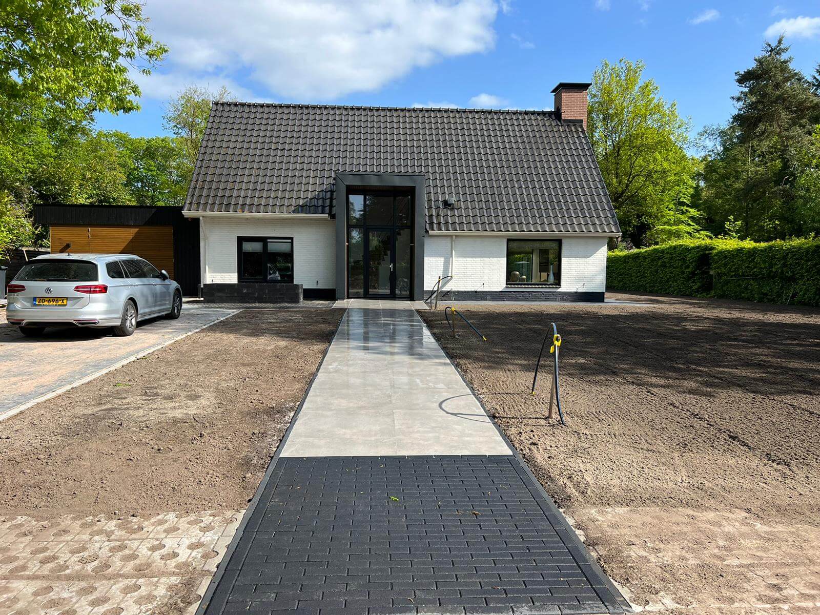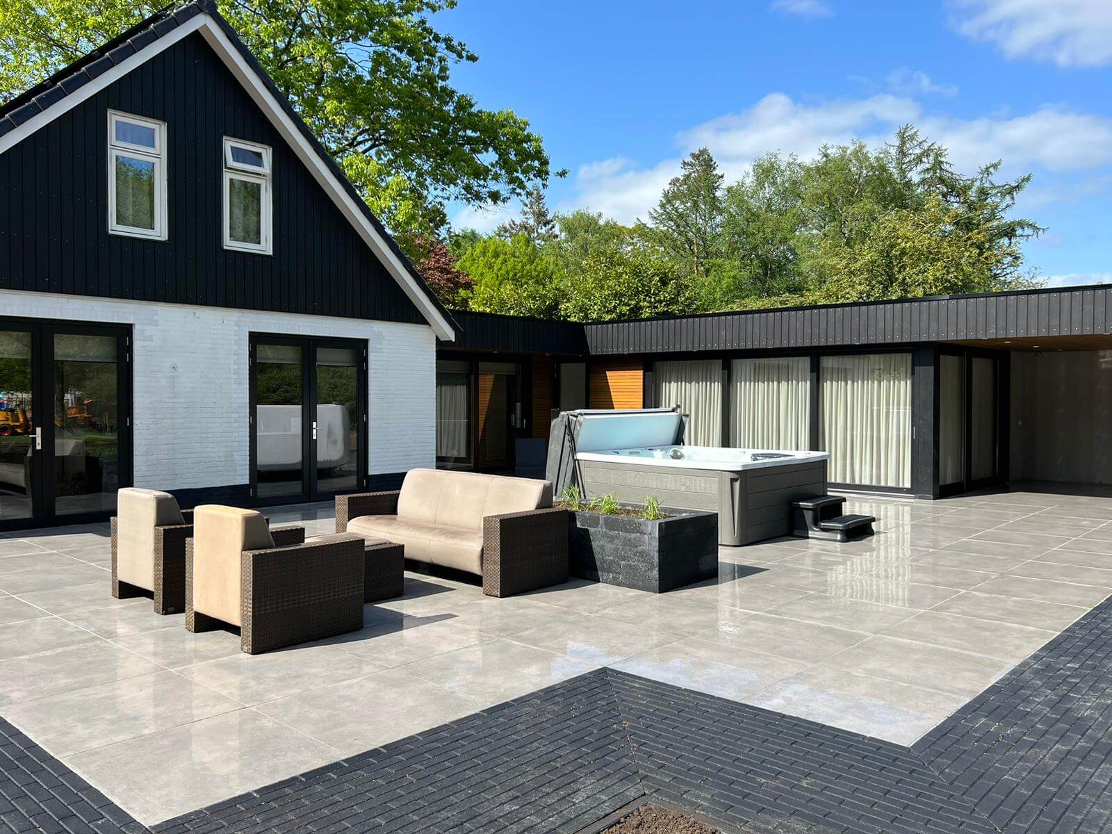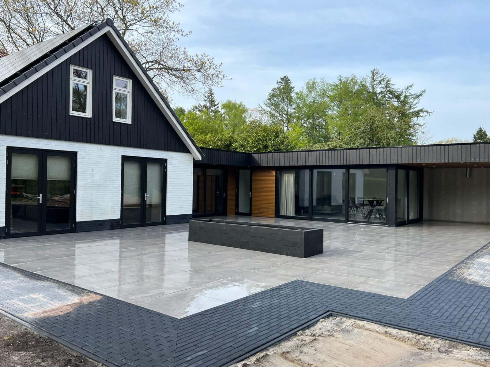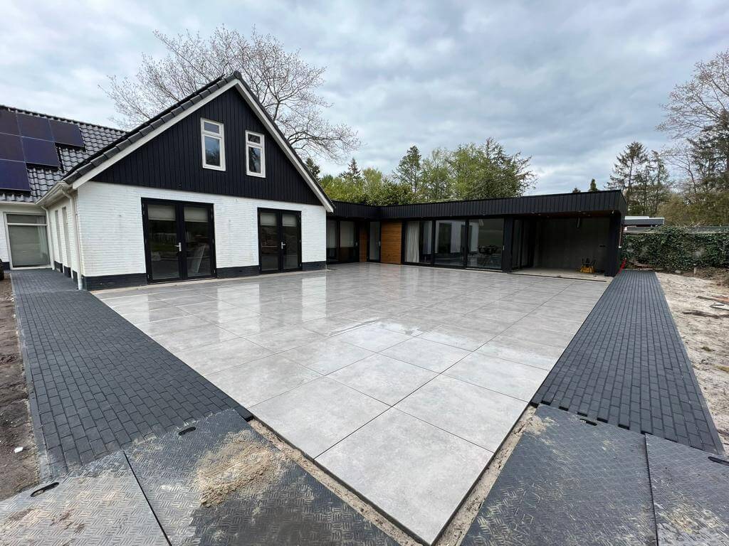 Aanleg tuin en terrassen ’t Harde, keramisch terras, borderbak en paden.