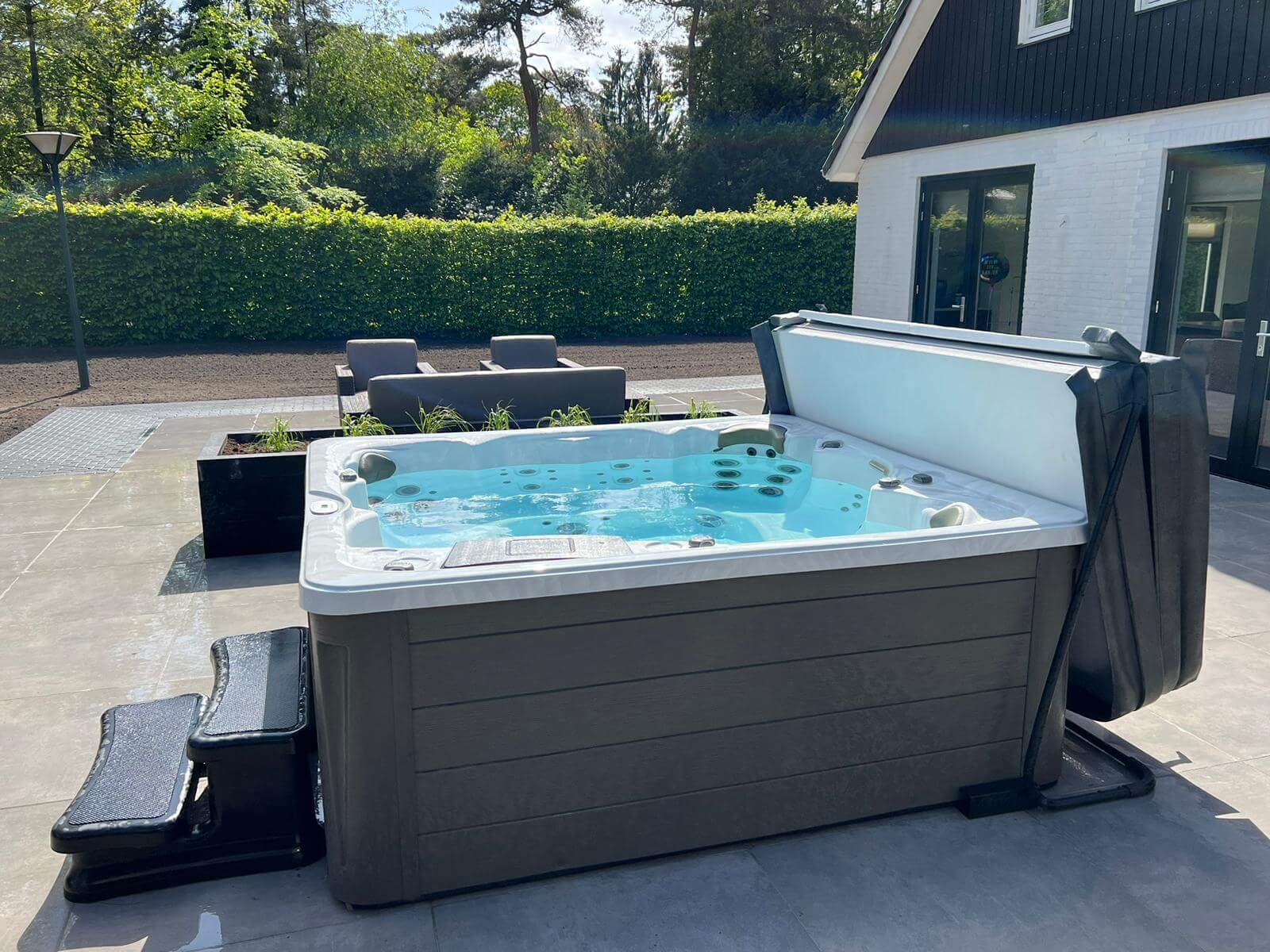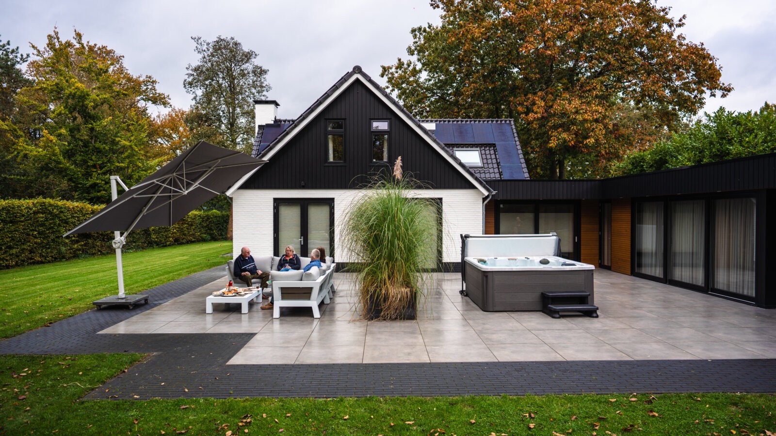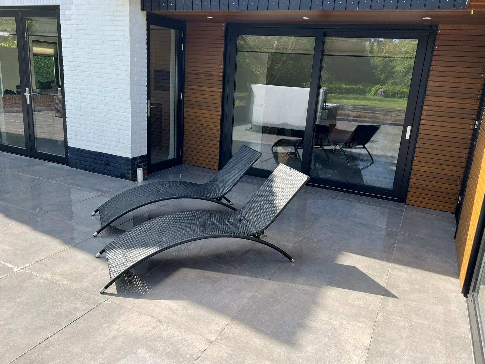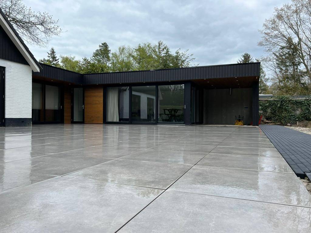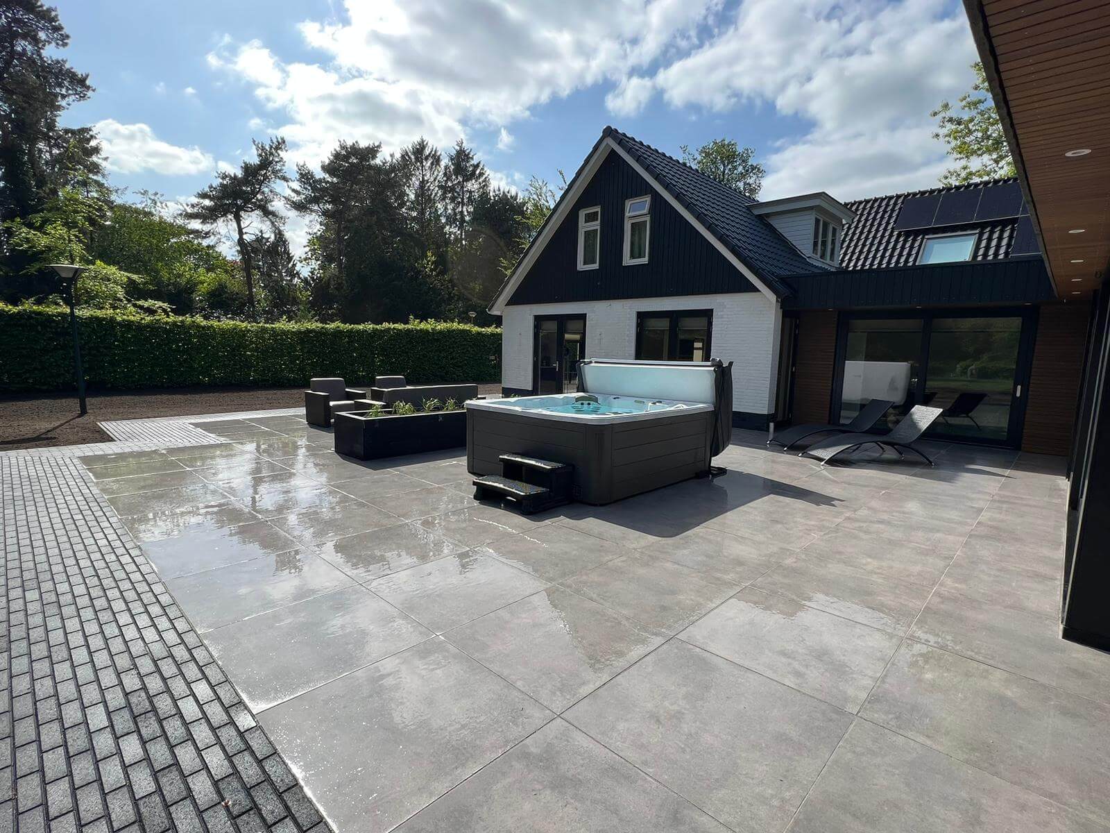 Aanleg tuin en terrassen ’t Harde, keramisch terras, borderbak en paden.