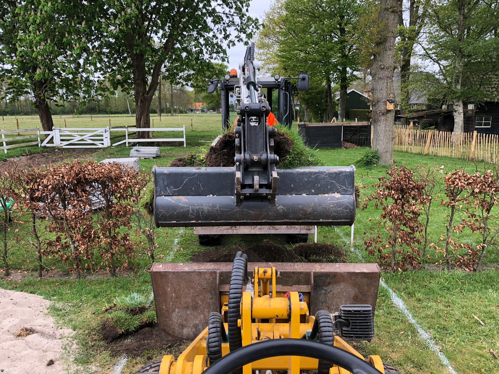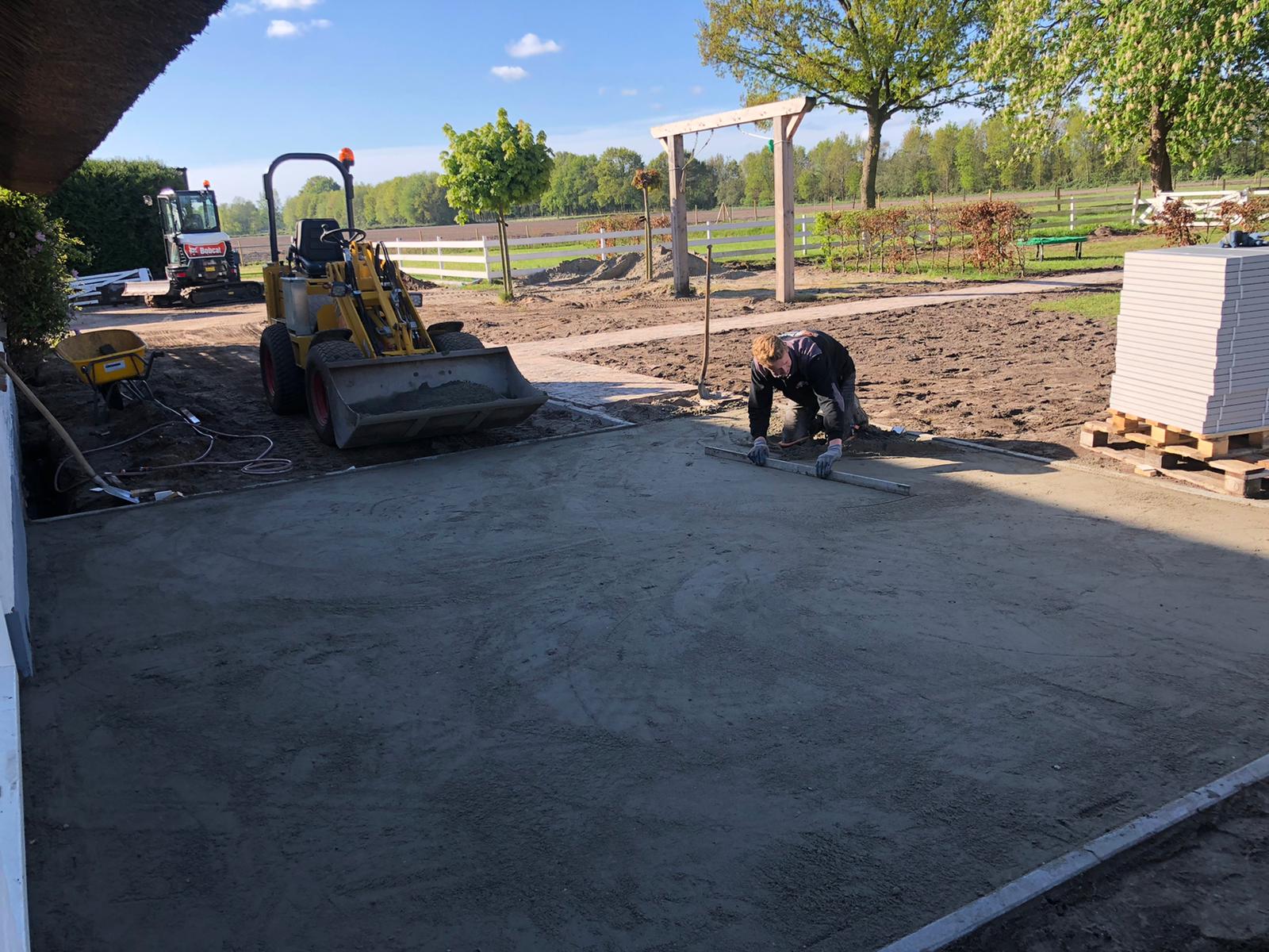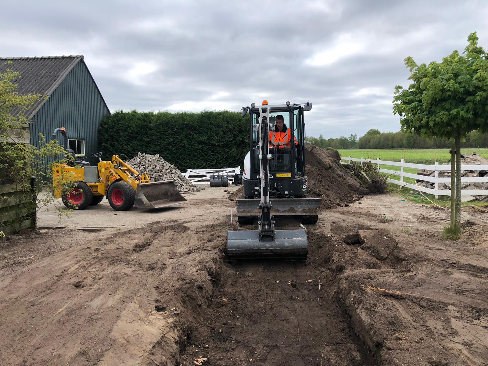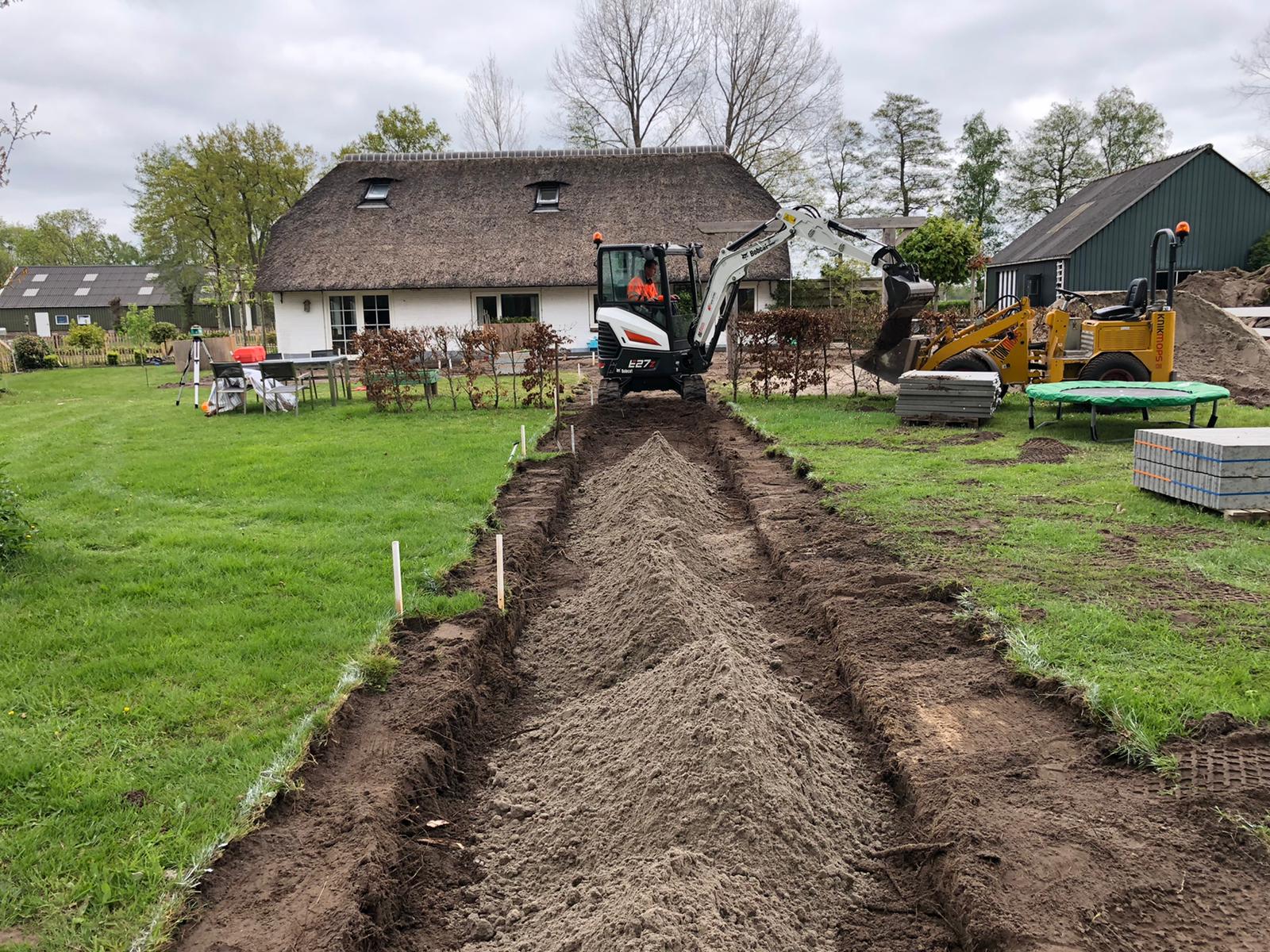 We hebben eerst het grondwerk uitgevoerd met klein materieel waarna we het terras hebben gelegd met nieuwe keramische tegels. De tegels zijn gelegd in 20cm beton en met een cement gebonden voeg De paden zijn aangelegd met oude gebakken Waaltjes. Daarna de graszoden aangebracht wat de tuin direct afmaakt.