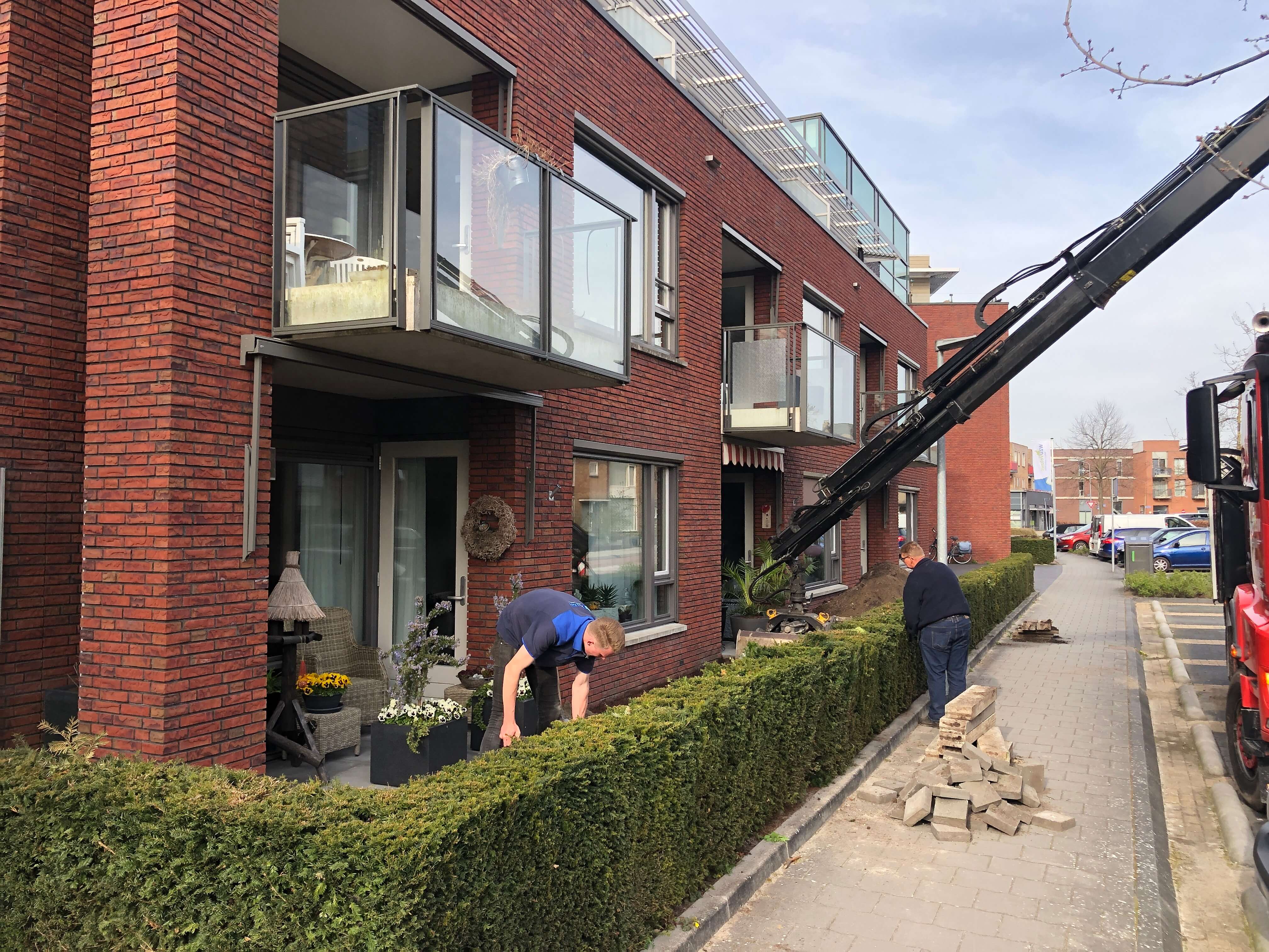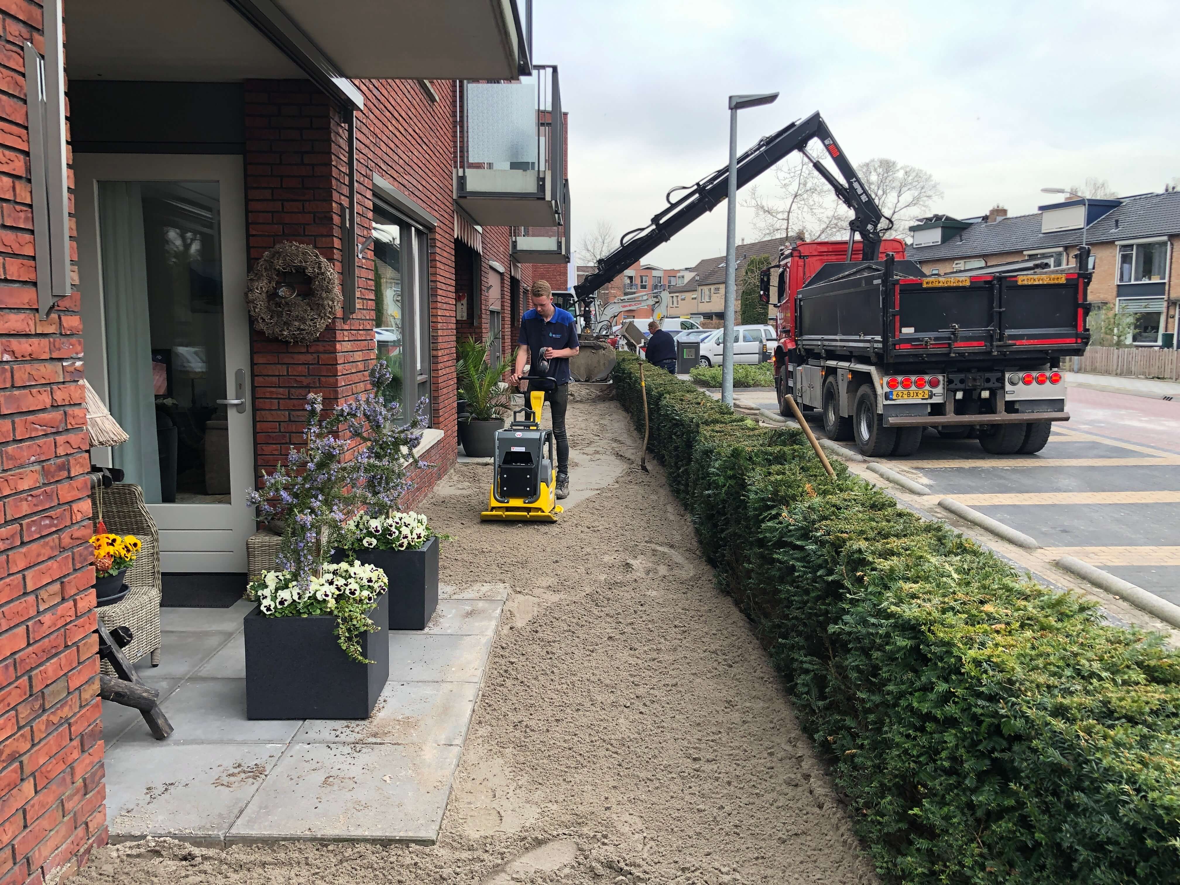 Het cunet hebben wij met een autokraan ontgraven en straatzand aangebracht.