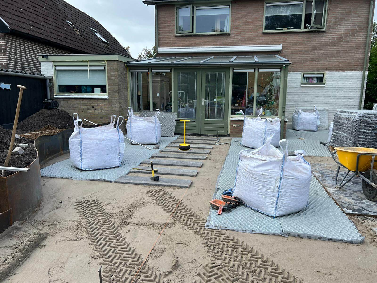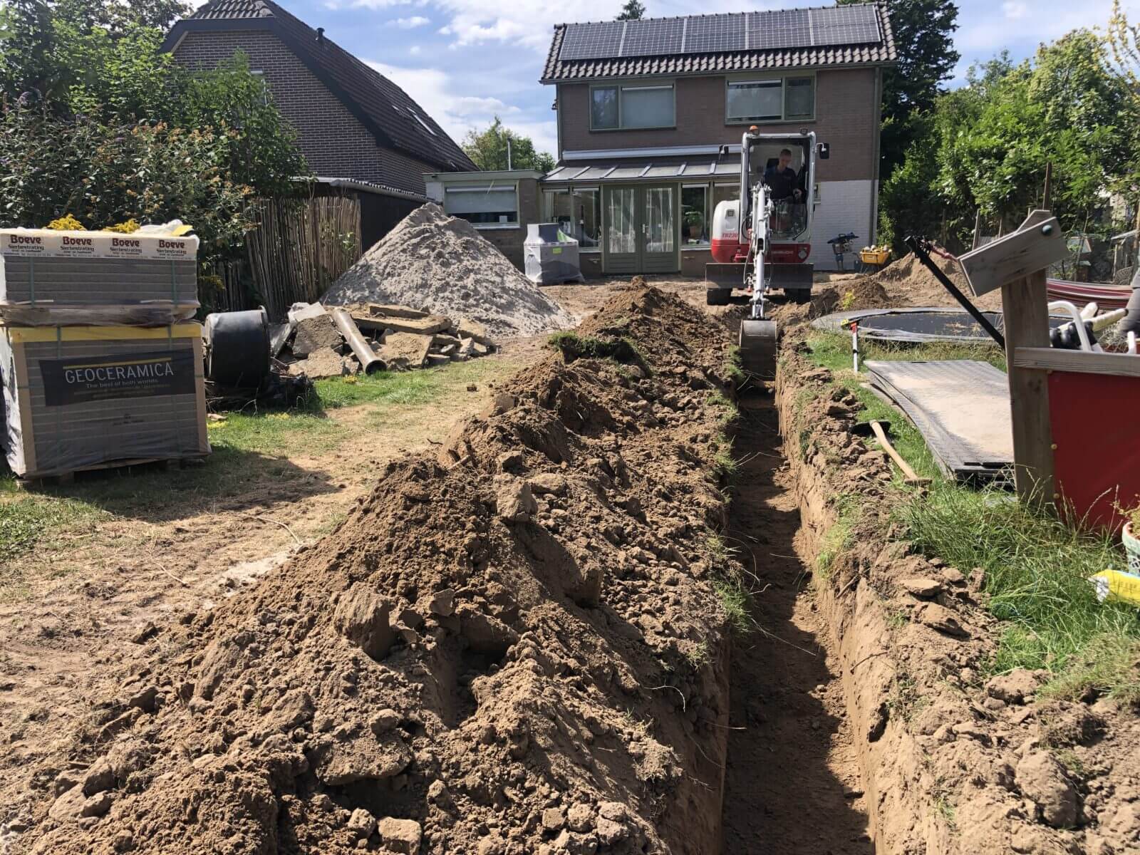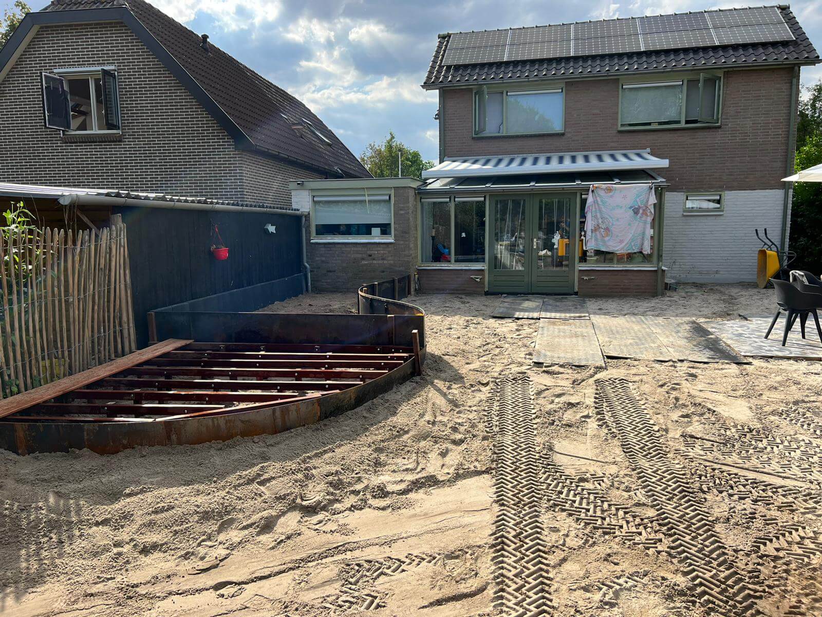 We hebben de tuin leeg gehaald en het straatwerk / groen afgevoerd. Het grondwerk hebben we uitgevoerd met klein materieel.