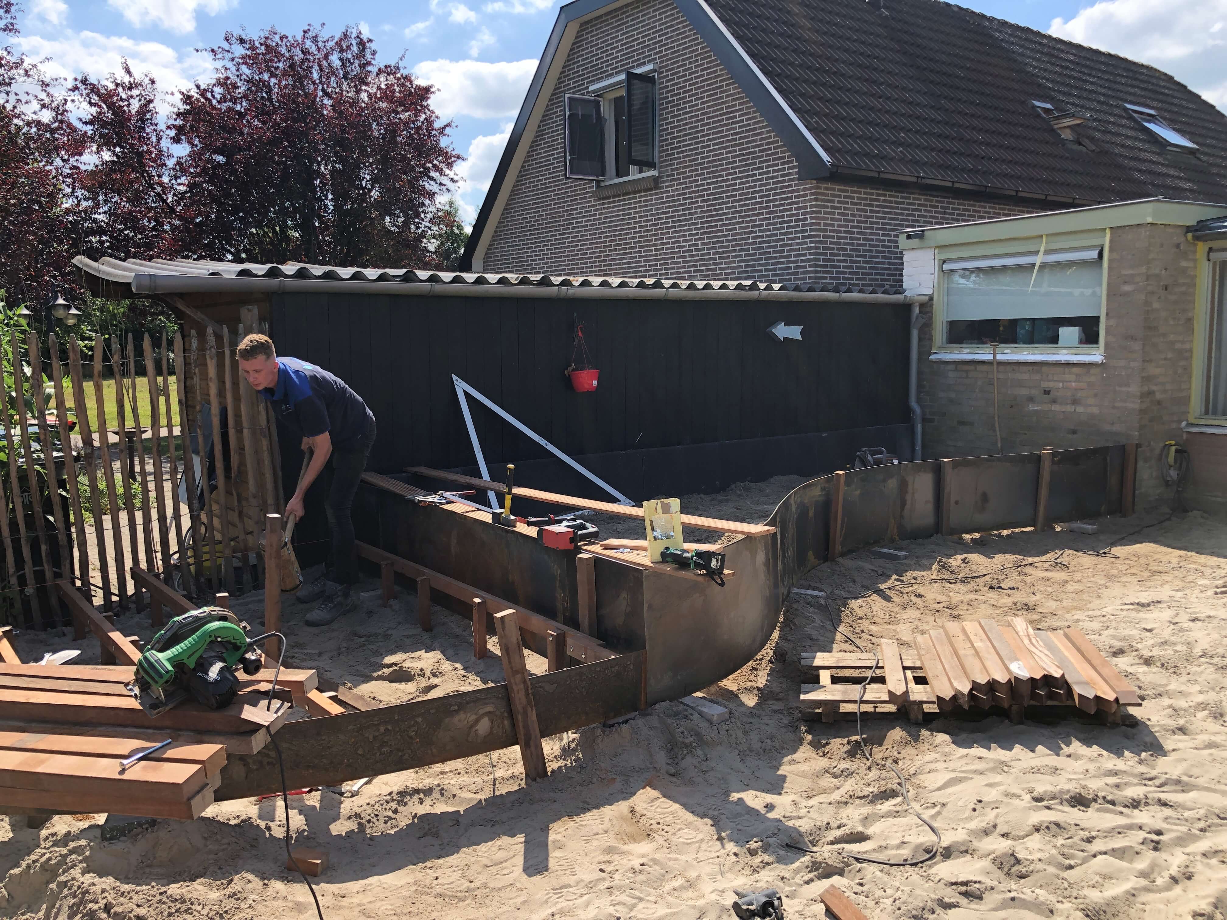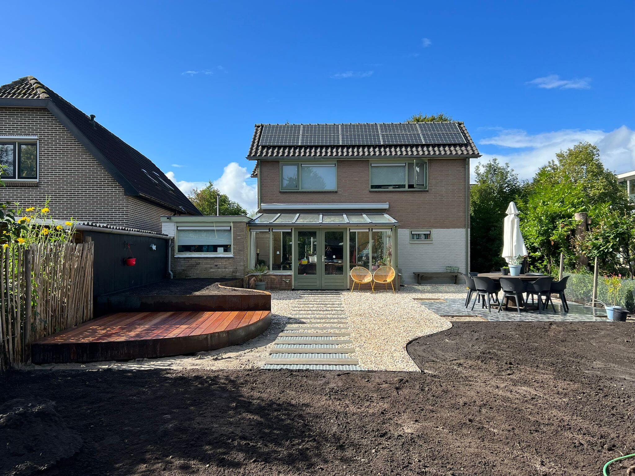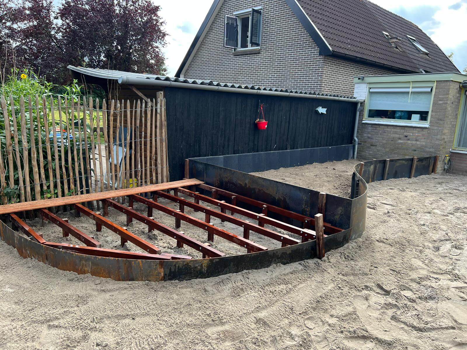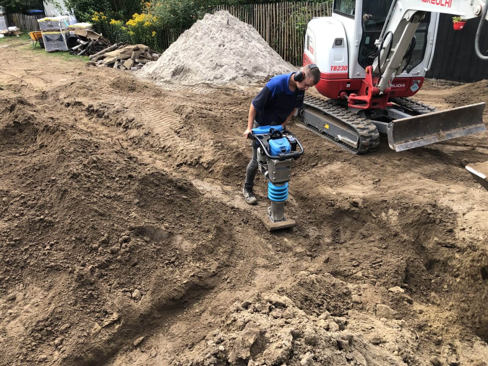 We hebben de tuin leeg gehaald en het straatwerk / groen afgevoerd. Het grondwerk hebben we uitgevoerd met klein materieel.