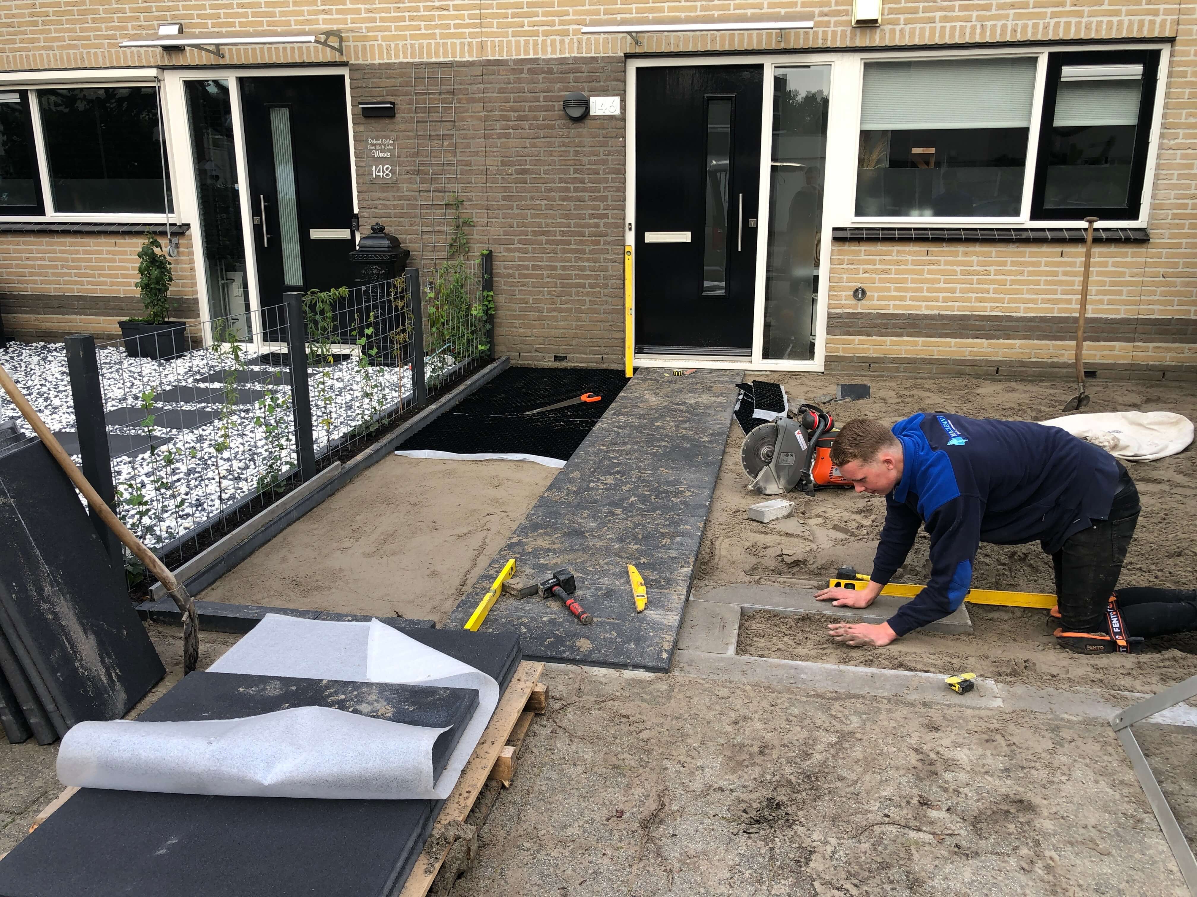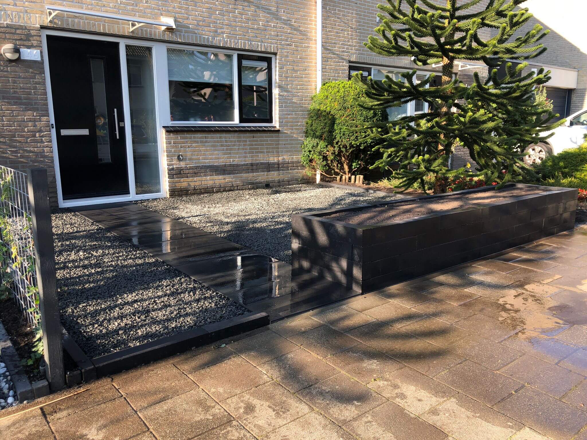 Tuinrenovatie voortuin Zwolle van grondwerk tot oplevering.