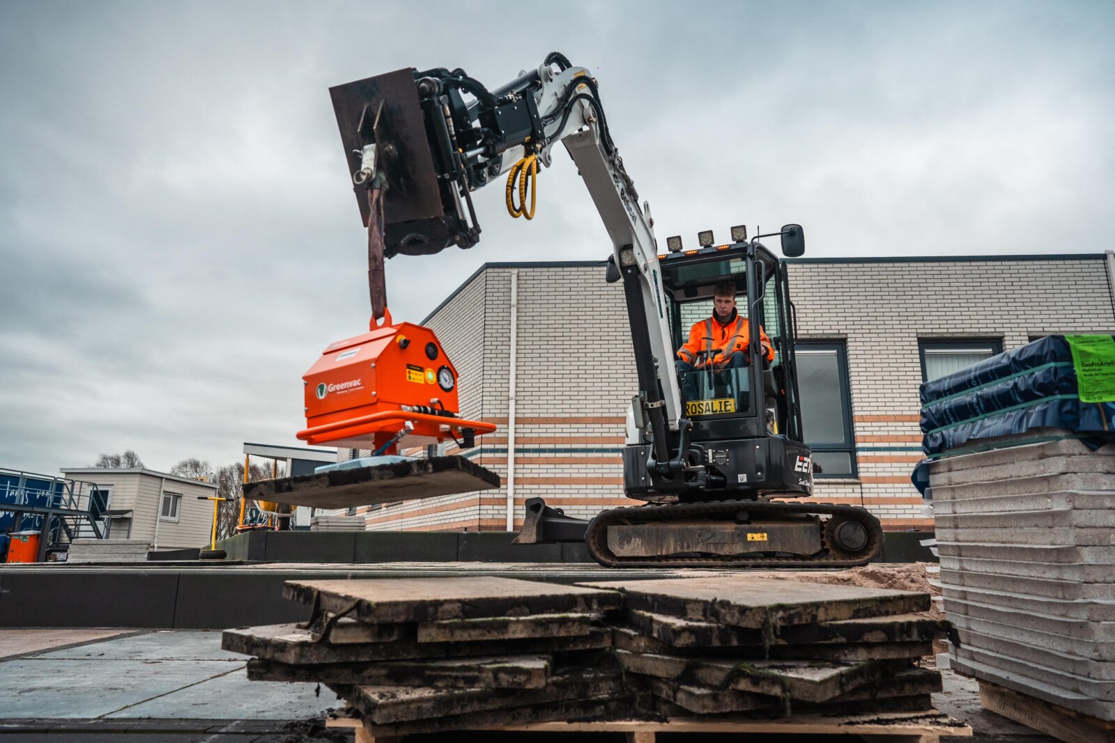De werkzaamheden zijn uitgevoerd met ons emissievrije vacuümsysteem, de nieuwste VTH-500-AR van Greenvac. Deze machine is radiografisch te bedienen en werkt op een 12v accu in plaats van een benzineaggregaat. Op die manier werken wij schoner, stiller en volledig emissievrij.